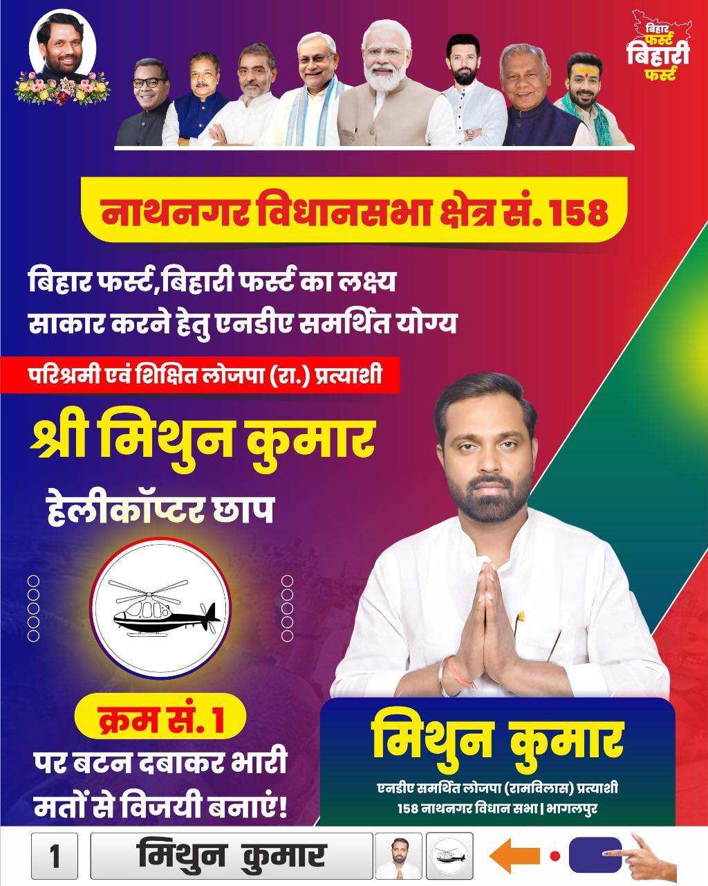 इसी के साथ, नाथनगर विधानसभा क्षेत्र से एनडीए द्वारा समर्थित प्रत्याशी के रूप में मैदान में हैं।