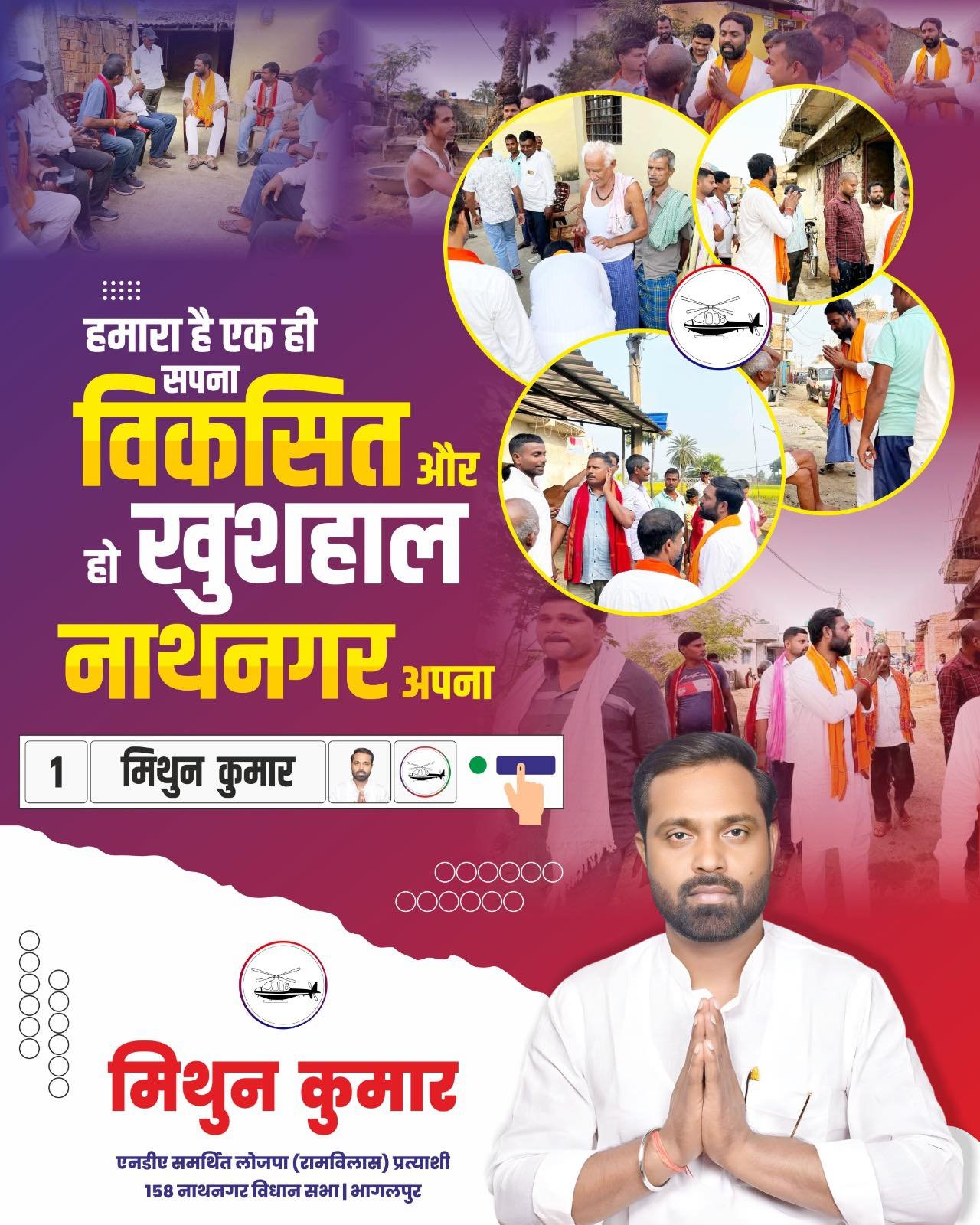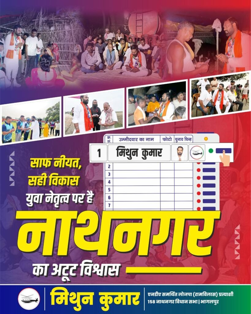नाथनगर विधानसभा क्षेत्र को विकास का मॉडल क्षेत्र बनाने का — जहाँ शिक्षा की सुविधा हो, हेल्थ-केयर बेहतर हो, और युवाओं को रोजगार मिले।